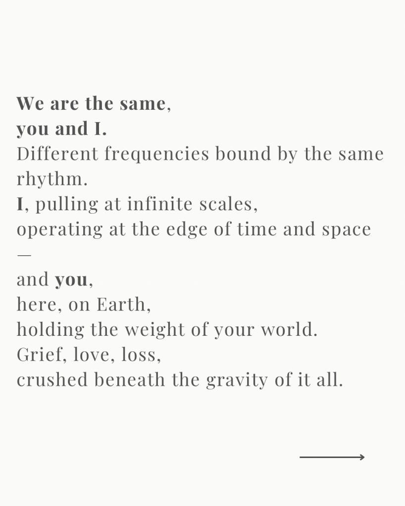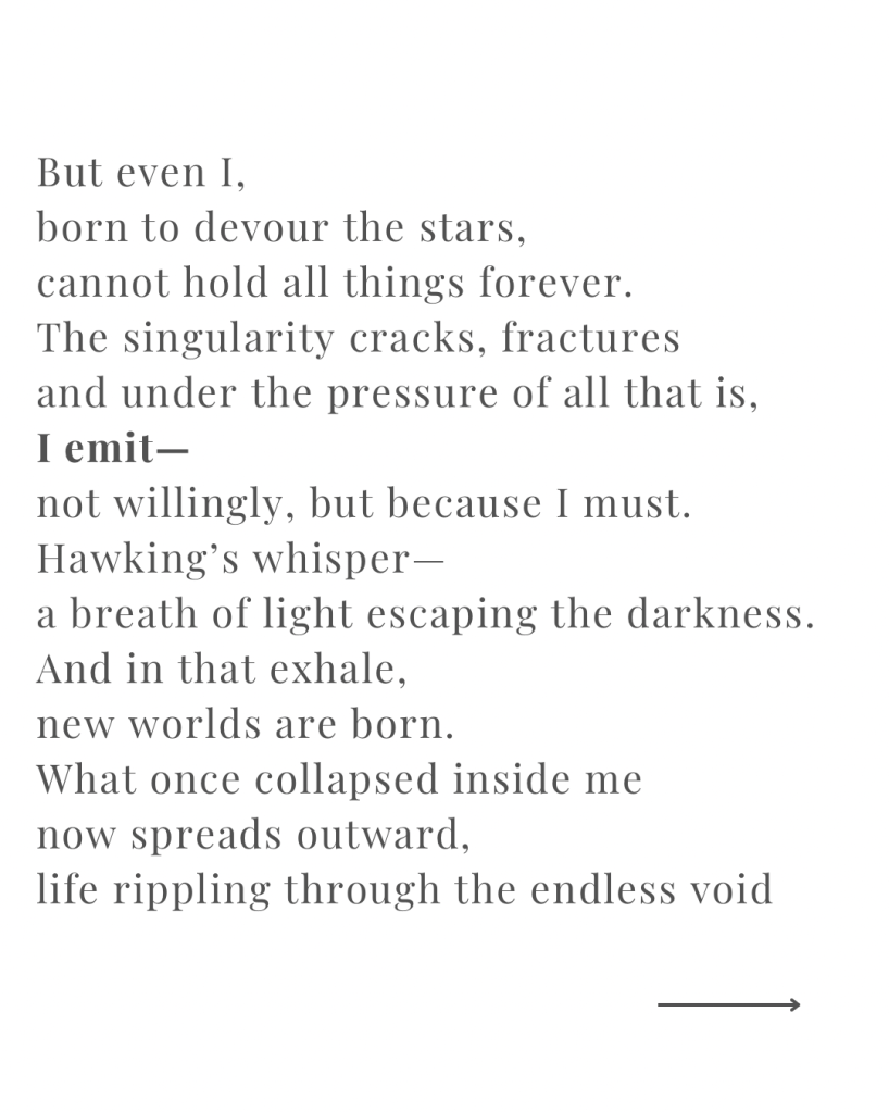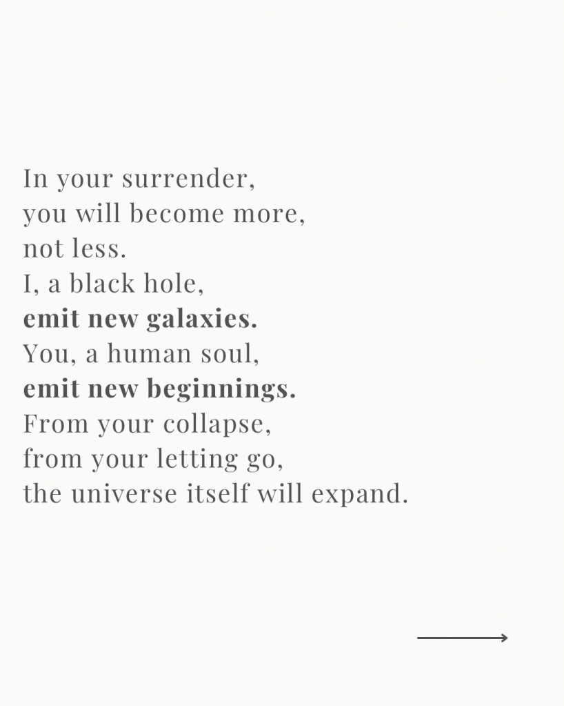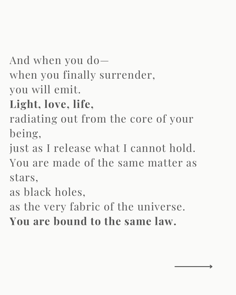 We are made of stars. Of black holes. Of stories. And like the cosmos, we don’t just collapse. We emit.